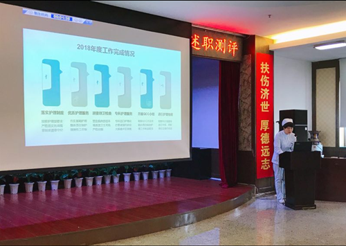 报告会上,护士长们以PPT的形式紧密围绕2018年医院和护理部的中心工作,从科室工作量概况、优质护理服务开展情况,护理团队建设、为患者提供满意服务、提升护理质量等方面,图文并茂、重点突出地阐述了一年的工作成果及不足,并确立了2019年的工作重点和努力方向。