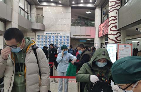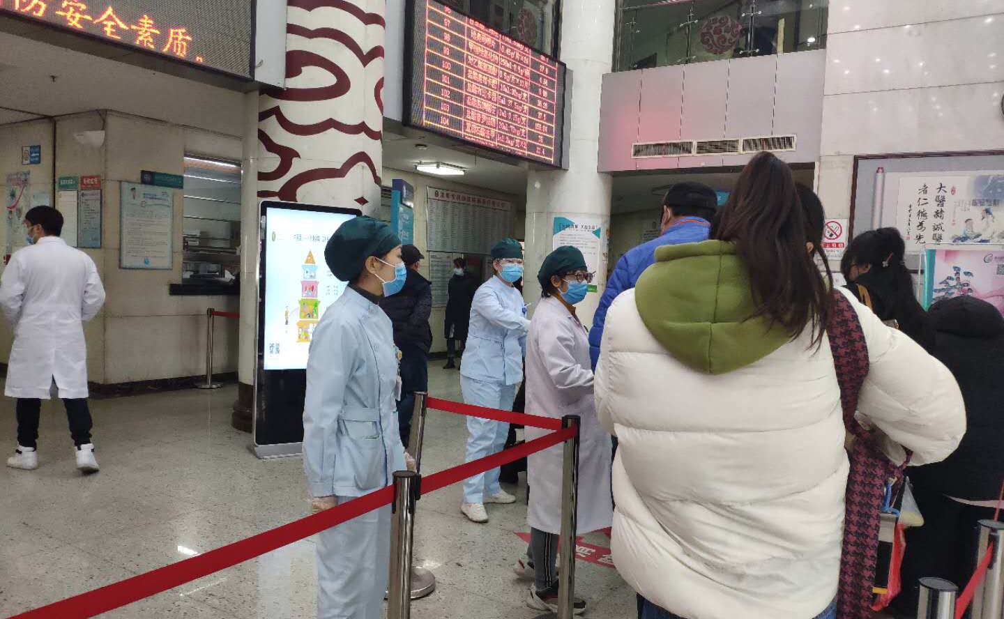 从2月24日一大早陆陆续续患者就开始排队进入医院,根据分流需要,预检分诊台从门诊大厅前移至医院大门口,并用隔离带隔出排队通道。有保卫科人员帮助控制入院人数,有效拉开距离,避免拥堵。入院人员先要进行体温筛查,如果遇到体温大于37.3度的,再次使用水银体温计测量体温。根据信息统计要求,加强疫情溯源和监测,患者会进行登记,询问是否到过疫区,是否有流感症状,流行病学史等。我院计算机中心开发了手机小程序,可以让患者通过手机扫码进行登记,提高了登记效率,避免拥堵。工作人员会要求所有进入人员进行扫码登记,针对不会使用扫码和忘记带手机等情况,登记好个人信息。