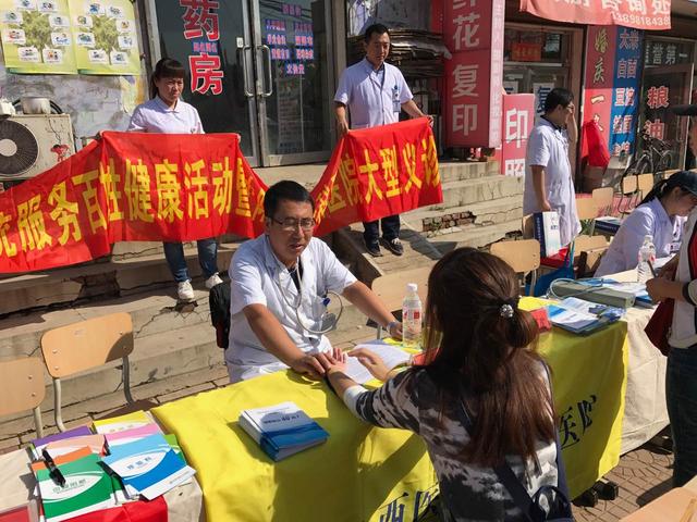 义诊现场,尽管环境有些简陋,尽管初秋的天气仍旧十分炎热,但大家情绪高涨,用村里提供的大小不一的办公桌、方桌快速搭起了一个个简易的义诊台,悬挂了义诊横幅、宣传标语、展板,放置好一叠叠卫生政策、卫生知识宣传资料。义诊桌前,前来进行中医诊脉、测试血糖、测量血压以及咨询疾病的村民络绎不绝。