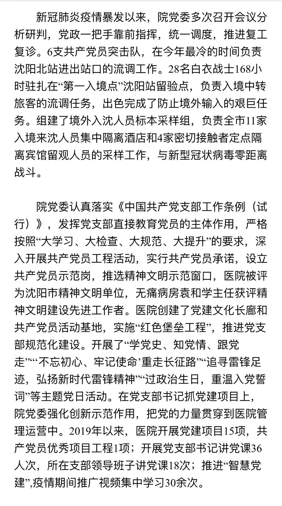 医院党员驻守沈阳站开展入境旅客流调工作